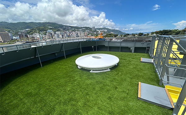 最上階の展望デッキは人工芝の広場となっており、ユニバーサルデザインのベンチに腰かけ、海風を感じることができます。